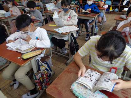 毎日の朝読書を集中して行っています。5年生は読書の好きな子たちがたくさんいます。今年の目標は,100冊読むことと合計1万ページ読むことです。これからも読書に親しんでほしいと思います。
