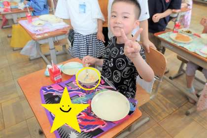 給食にたまに入っている星形のハッピー人参。今日の大当たりは1年生でした。今日の★の数は全校で3つだけだったそうです。とってもラッキーですね。