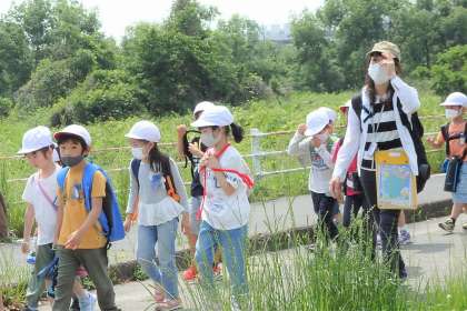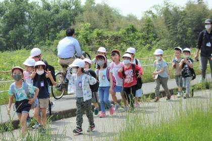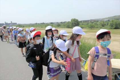 今日は,子どもたちがとっても楽しみにしていた遠足でした。ちょっと汗ばむほどのお天気でしたが,川辺の涼しい風が心地よい遠足日和でした。