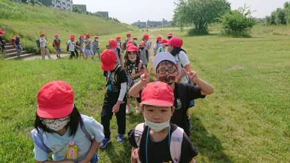 春の遠足で嵐山東公園に行きました。徒歩での移動で,天気もとてもよく,まさに遠足日和でした。桂川の河川敷沿いを進んでいくとたくさんの花が咲いていて,いろんな発見もありました。
