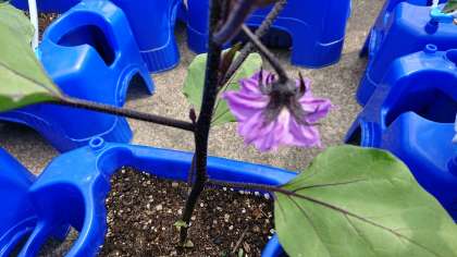 生活科で育てている夏野菜ですが,毎日水やりをがんばっていて,野菜の苗に変化が表れてきました。「紫の花が咲いている。」「先生小さい実ができてる。」と早速いろいろ気づいていました。どんどん大きくなあれ。
