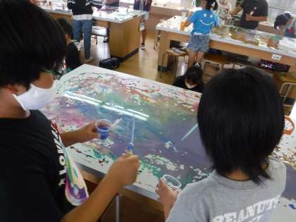 だんだんと大きな模様に変化していっています。最初は個人で楽しんでいた子たちもグループでの作品作りに変化していっていました。