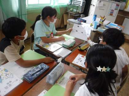 家庭科では持続可能な暮らしについて学習しています。ものの買い方やお金の使い方について学んでいます。今回は,「指令書」に基づき,どの商品を買うのがよいのかをグループで話し合いました。