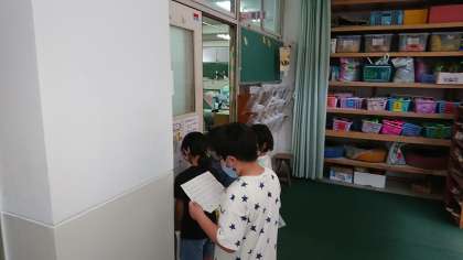 1年生とまわる“わくわく学校探検”に向けてリハーサルをしました。実際に2年生同士で学校を探検し,看板を確認したり,説明の練習をしたりがんばっていました。本番が待ち遠しそうです。