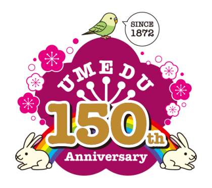 中央の大きな梅は「学校」を,周囲の6つの梅はそこで花開く「6学年」を表しています。虹は時を重ねた年輪のようであり,過去から現在・未来への架け橋でもあります。インコとウサギは可愛らしいマスコットです。子どもたちからの応募作品を参考に,150周年記念として,素敵なロゴマークを作成していただきました。