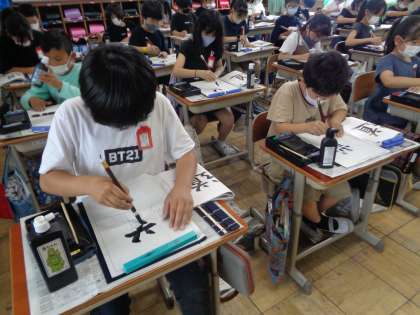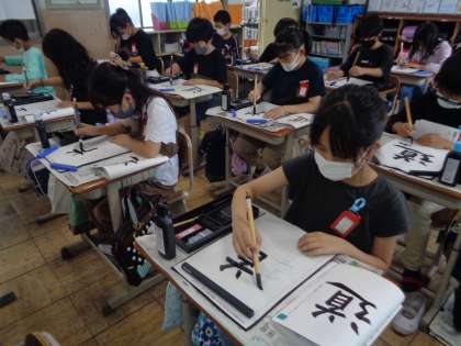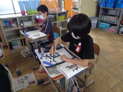 5年生になってから2回目の毛筆でした。今回は,「道」という字を書きました。初めての「しんにょう」に苦戦していましたが,集中して丁寧に書くことができました。
