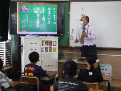 今日の3時間目,右京警察署のスクールサポーターの方が非行防止教室の話をしに来てくれました。スライドなどを使って分かりやすく説明してくれました。暴力やいじめ以外にも,ネットでのトラブルなどについても話していただき,子どもたちも「心のブレーキ」を大切にしようと感じたようです。