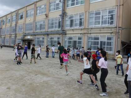 6月はジャンプアップ月間です。休み時間には元気に外で遊んでいます。今日の昼休みは大繩です。連続で何人跳べるかに挑戦しています。