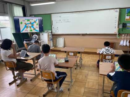 算数の学習で「一筆書き」をしました。まず,「ケーニヒスベルクの七つの橋」をしました。何度やっても一回で書けないことに気づき,「これはできない。」と発表してくれました。