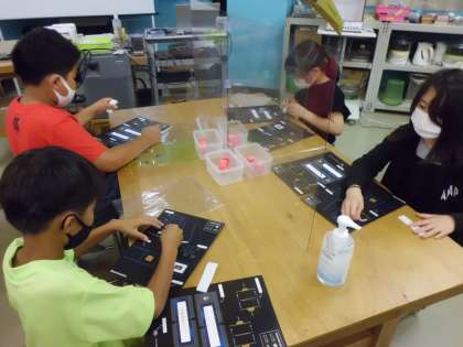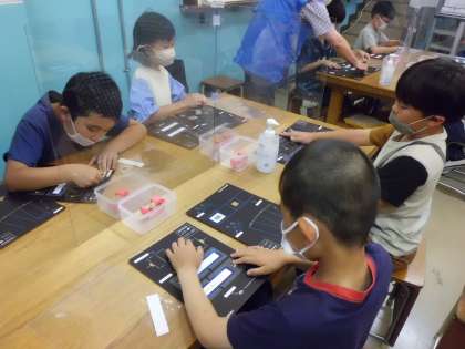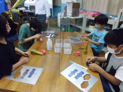 工房学習でも,一生懸命説明を聴きながら,光を調べる装置をつくりました。