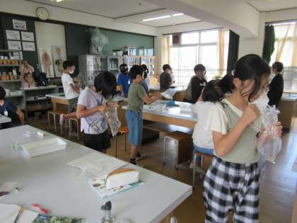 はいた息に二酸化炭素が多く含まれているのか実験しました。