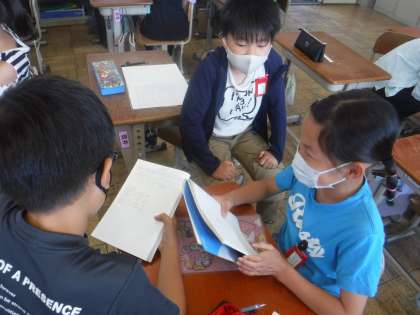 算数では「小数のわり算」に入っています。四則計算の中で一番苦手意識が強いのがこのわり算です。中でも小数では,ややこしい小数点移動で難しく感じる子が多く見られます。まずは,どのように考えたのかをグループで話します。自分の考えを伝えながら,話練習をしてほしいです。