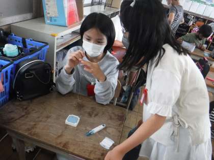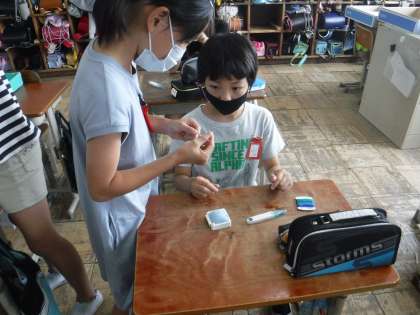 針に糸を通した後は,玉結びの練習をしました。なかなかうまく結べずに試行錯誤していました。早くできた子は自然と周りの子へとアドバイスする姿が見られました。みんなで助け合いながらできるようになっていきたいと思います。