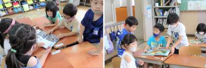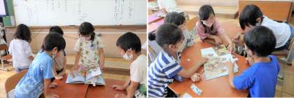 アイデアを出した後は,自分がクイズにしたい生き物を探すため,いろいろな図鑑を読みました。お気に入りの動物は見つかったかな?