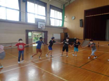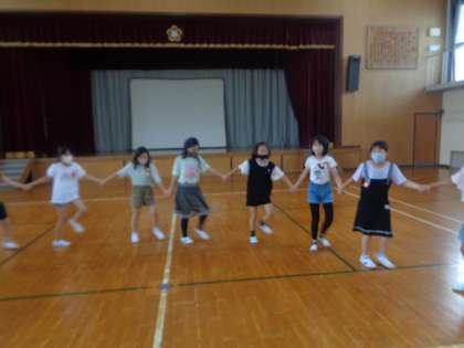 山の家のキャンプファイヤーで行う「フォークダンス」の練習を行いました。足のステップに苦戦する子もいましたが,楽しく活動できました。本番でも楽しく活動るように頑張ってほしいと思います。