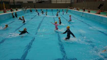 低水位での『水あそび』が始まりました。スッキリしない天気で少し肌寒い中でしたが,今年度初めてのプールを楽しんでいました。最初の授業ということで,プールでのルールや緊急時の対応の仕方についても学習しました。安全に気を付けてこれからも楽しく水と仲良くなっていきたいと思います。