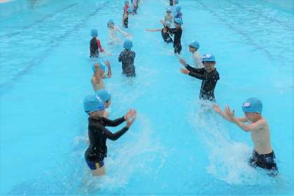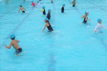2回目の水泳学習は,お天気も何とか持ちこたえて無事入ることができました。2回目ということで,1回目に確かめたルールもしっかり覚えられていて,スムーズに活動に入ることができました。友だちと水を掛け合ったり,対岸の壁にタッチしたりして楽しみました。