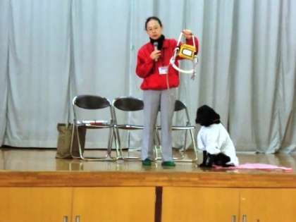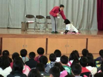 盲導犬について,3年・4年・むくのき学級の子ども達が体育館で学習しました。