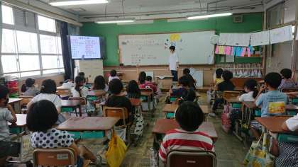 食育で「夏野菜のよさを知り,たくさん食べよう作戦を考えよう」という学習をしました。自分たちが育てている夏野菜ですが,食のアンケートによると苦手な人が多いようでどうにか食べたいなということで学習を進めました。夏野菜には水分がたくさん含まれていて,体を冷やしてくれたり,水分補給ができたり,風邪をひきにくくしてくれたりいいことがたくさんあることを教えてもらいました。そこで,苦手を克服するためにどうしたらいいかグループで話し合いました。自分の経験を思い出しながら「味付けをかえたら」「好きなものと一緒に食べたら」などいろいろな作戦ができあがってきました。中には,「何回も食べ続けることで克服できる」「好きなものだと思い込んで食べる」などおもしろい意見も出てきました。この作戦を実践してみんなでおいしく夏野菜を食べていきたいと思います。