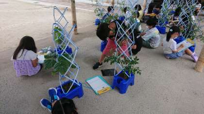 大きく育った夏野菜を観察しました。オクラも大きく育ち,ミニトマトも赤く色づいてきました。これから夏に向けしっかりお世話をしてたくさん収穫できるようにしたいです。
