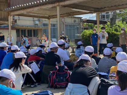 出発式で元気に朝の挨拶をしました。2日間楽しい思い出がたくさんできるように頑張りたいと思います。