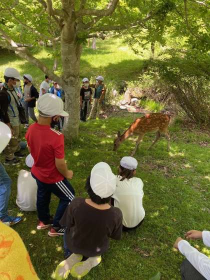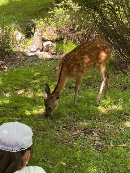 活動中に野生のシカに遭遇しました。自然って素晴らしいです!