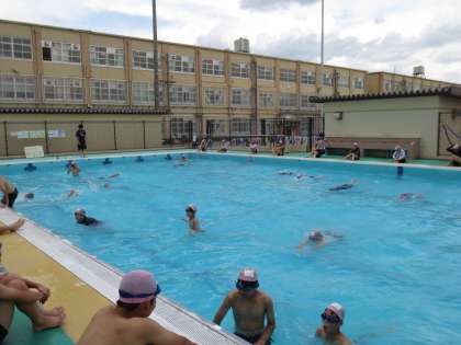 あいにくの曇り空でしたが,子ども達は気持ち良さそうに水に入っていました。