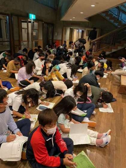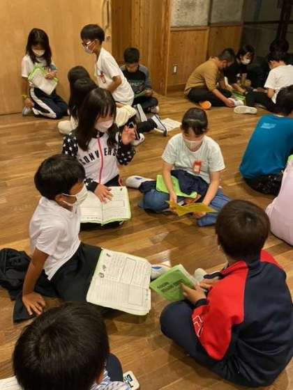 1日の活動の振り返りを行いました。今日楽しかったこと、協力できたこと、もっと頑張りたいことなど色々話し合っていました。2日目の活動も楽しみです!
