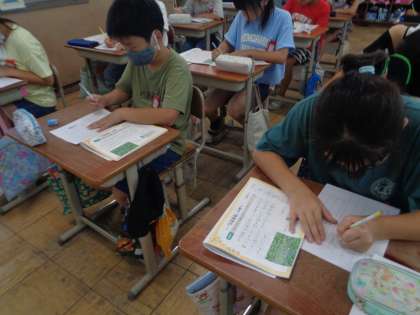 書写の時間に「竹取物語」を硬筆で書きました。文字の大きさや配列に気を付けながら書くことができました。