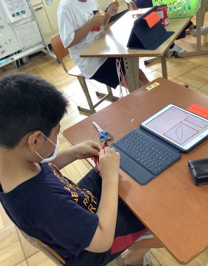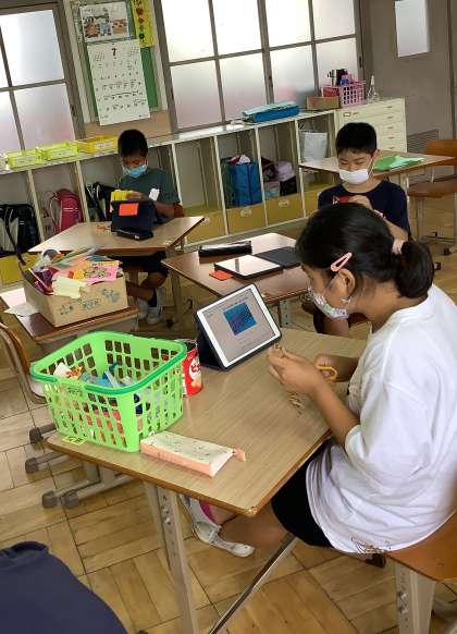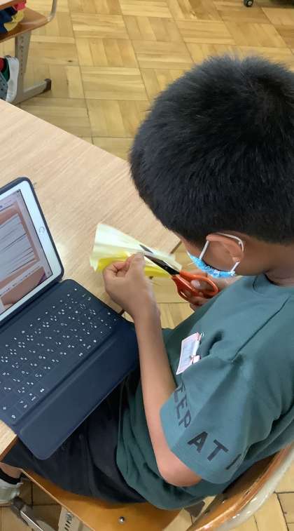 7月7日の七夕に向けて,飾り作りを行っています。一つ一つの飾りには意味があり,網飾りでは,魚を捕る漁網(ぎょもう)を表していて,大漁を願って作られているそうです。同じ折り紙でも大きさを変えてみたり,キラキラ光る紙にしてみたりと,思い思いに作っていました。