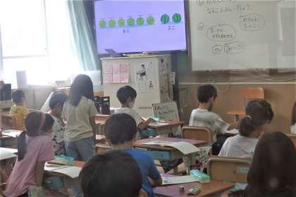 1学期の引き算の学習の大きな山場が「どちらが多い?」の引き算です。絵を見て2種類の果物が並ぶと,つい足し算を使ってしまいたくなりますが……違いを比べる時には引き算を使います。