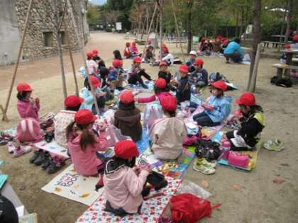 心配していた雨も降らず,みんなで楽しくお弁当を食べて後は,ドングリ拾いをしました。「めざせ,宝の山!」を合言葉に2年生全員で,アラカシの木の根元を探ったり,落ち葉をかき分け,たくさんのドングリを拾うことができました。いつも元気で賑やか2年生が,黙々と夢中になって拾い集めました。おかげでたくさんのドングリを拾うことができました。子ども達の満足げな笑顔が,あちらこちらで見られました。学習としても充実した1日でしたが,子ども達が仲良く協力し合い,事故や怪我も無く楽しい一日を過ごせたことが何よりだったと思います。