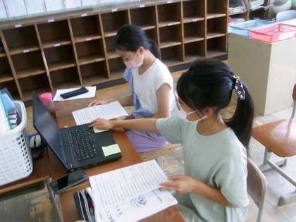 計画委員会の委員長と副委員長が学校の代表として京キッズ会議に参加します。その練習を夏休みに行いました。短い時間で集中して取り組むことができました。