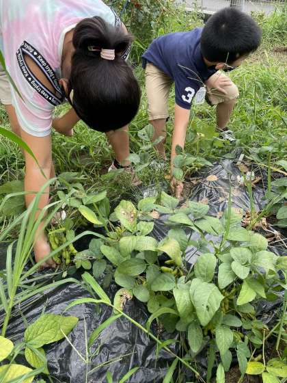 たくさんエダマメができていて,子どもたちは「おいしそう」「大きく成長したな」と言っていました。
