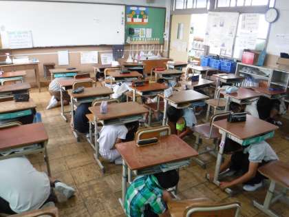 夏休み明けの学校が始まった日に,引き渡し訓練がありました。震度5弱の地震が起きたことを想定して避難訓練を行い,その後保護者の方に迎えに来てもらい引き渡す訓練をしました。放送をしっかりと聞いて,机の下に頭を入れて身を守る姿勢をとることができています。万が一災害が起こった時に自分の身を守る行動ができるようこれからも訓練していきたいです。