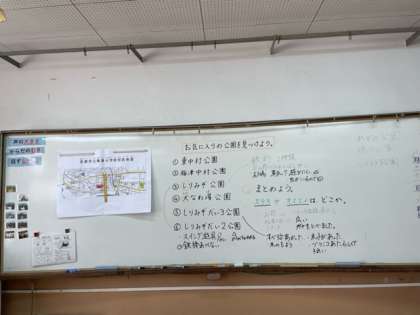 今日,昨日行った公園の良いところをロイロノートを使ってまとめました。ロイロノートでまとめたものを,友達に発表しました。