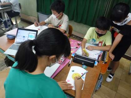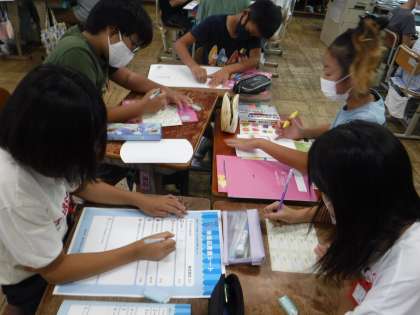 まずは会社の名前を考えたり,誰向けのお菓子にするのかを考えたり,パッケージデザインを考えたりとやることは盛りだくさんです。活動する中で「協力すること」の大切さや「役割分担すること」の大切さを学んだようです。