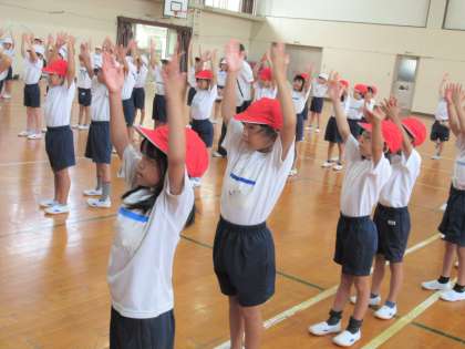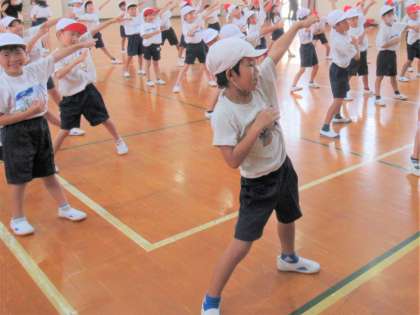 金曜日も学年でダンスの練習をしました。準備体操は動物のまねっこ遊びで、体を大きく動かして表現する練習をします。写真1枚目は本日のまねっこチャンピオンです!