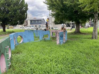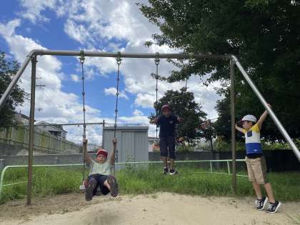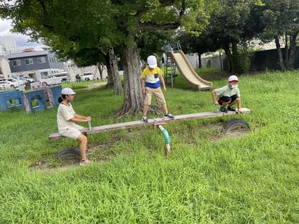 堤下公園はたくさん草が生えていましたが,ここにしかない遊具があり,みんなで遊びました。みんなに人気のある遊具はブランコ,シーソーでした。