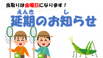 1年生活科『虫取り』延期のお知らせ