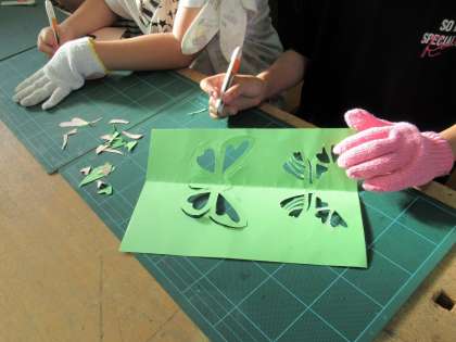 夏休み明けのアート部では、切り絵に取り組んでいます。今回は、簡単にできる絵柄に取り組んでから、より細かな作品作りにチャレンジしていきました。「次回も切り絵を頑張りたい!」という児童がたくさんいたため、次のアート部でも引き続き切り絵に取り組みたいと思います。