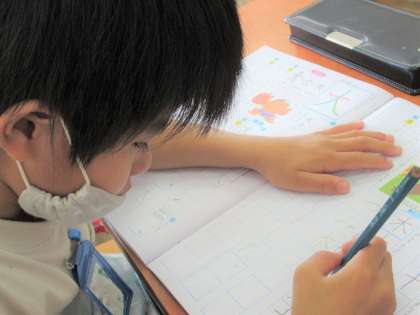 初めての書き方にはちょっと苦戦していましたが、今まで習ってきた「止める」や「はらう」は、しっかり意識しながら練習することができました。