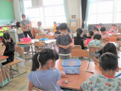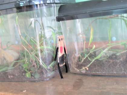 作った作品は、早速教室のあっちこっちの隙間に隠して遊びました。お気に入りの隙間が見つけられたでしょうか?