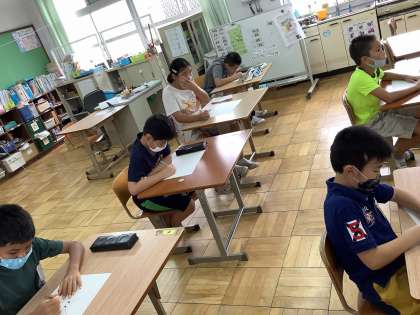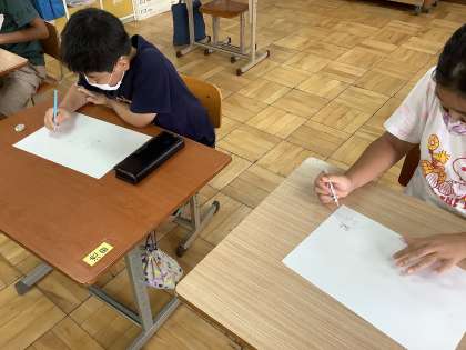 お話の絵に取り組み始めました。今年度は「いろいろかえる」という絵本です。まず,題名から登場人物やどんなお話なのかを想像しました。「カエルが出てくる話なのかな。」「色々な場所に帰る話なのかな」という想像が膨らみました。お話を聞いてからはさっそく鉛筆で下書きをしました。カエルの表情や動き,配置など思い思いにしっかりと考えて取り組んでいました。