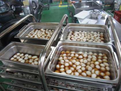 給食では,スチームコンベクションオーブンを使って、時間をかけてゆっくりを調理しました。コロコロまん丸の「里いも」は、だしの味がきいていて、おいしかったです。歯もいらないくらい柔らかく仕上がったことを子どもたちに伝えると、「ほんまや!」「何個でも食べられそう」「あんまり好きじゃないけど、1個はがんばったよ」と、それぞれに、秋の味を味わっていました。