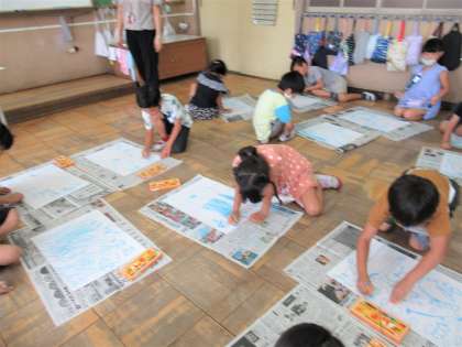 図画工作科の『お話の絵』の下描きを完成させました。それぞれ、主役の様子や周りの登場人物の様子まで、想像力をいっぱい使って描いていきました。