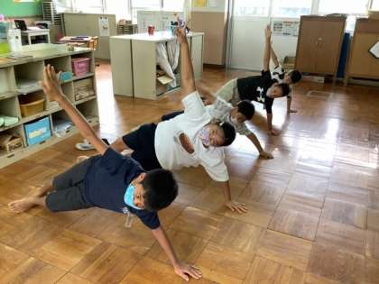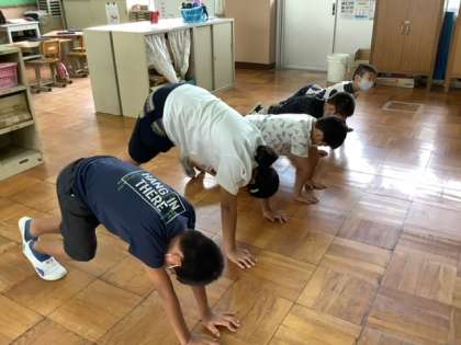 子どもたちは,伸ばした時の態勢で「すごくしんどい」「もう無理」と言いながらも腕を伸ばして自分を支えていました。