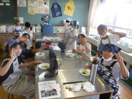 みんなで協力して作ったサラダはおいしかったです。ドレッシングも簡単に作れることが分かり,「おうちでもつくってみたい」と意欲的でした。