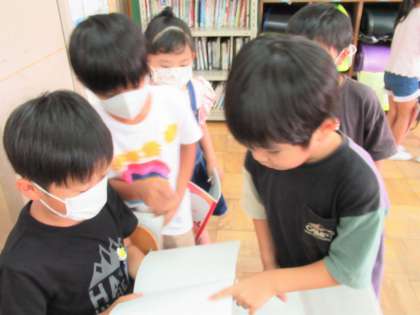 国語科『やくそく』では、自分の好きな場面やそのわけを友だちに伝える学習をしました。1学期に平仮名の練習をがんばった子どもたち。自分の考えたことを文章に書いたり、それをもとに友だちに話したりするなど、活動の幅が広がっています。