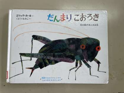 うめのこさんの読み語りがありました。この時期にぴったりの「だんまり こおろぎ」という絵本でした。静かなコオロギぼうやがいろいろな昆虫や動物に出会うお話です。最後には,まさかの・・・絵本からコオロギの鳴き声がしました!